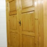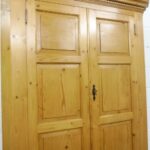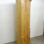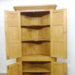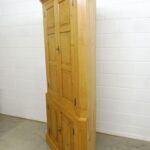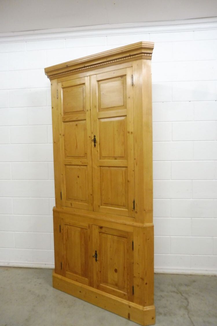 Country-style softwood corner cabinet. Restored and treated with wax. Dismantles into 2 parts. Ready for immediate use.