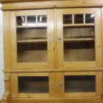 Antique softwood hutch cabinet, circa 1900. Fully restored and wax-treated. Disassembles into 2 parts. Ready for immediate use.