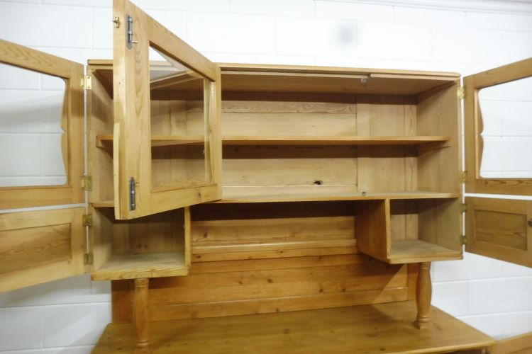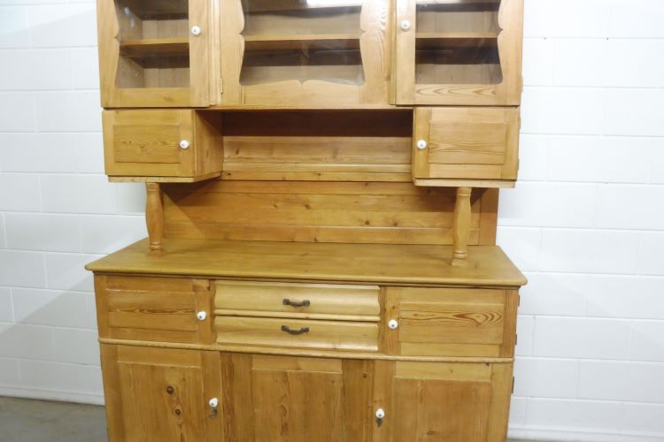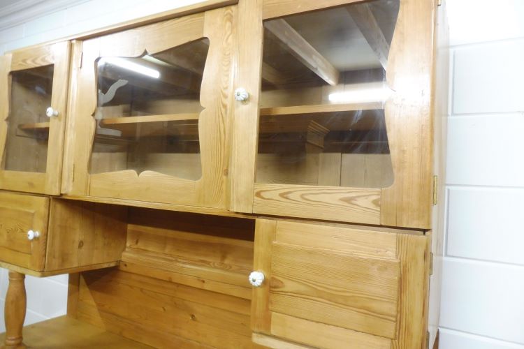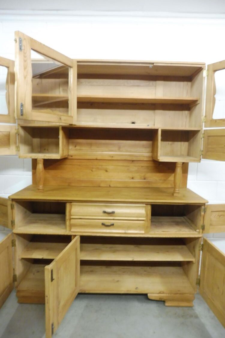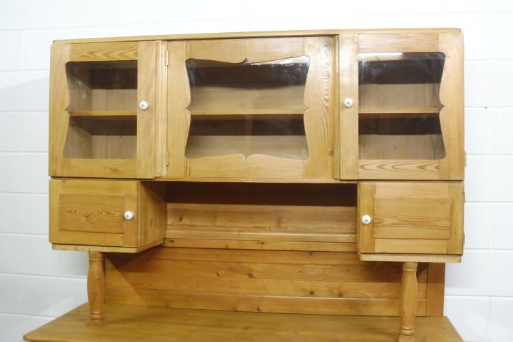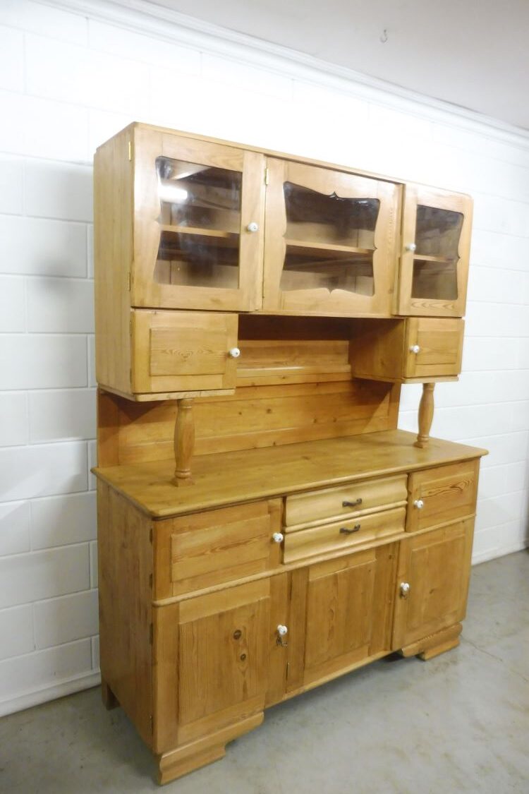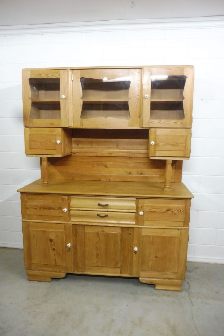 Beautiful antique Art Deco softwood kitchen hutch. Restored and treated with wax. Dismantles into 2 parts. Ready for immediate use. Height 206 cm Width 160 cm Depth 55 cm