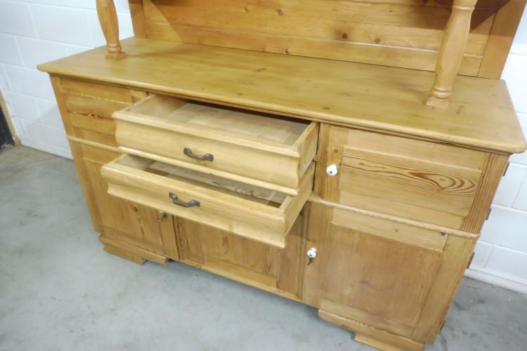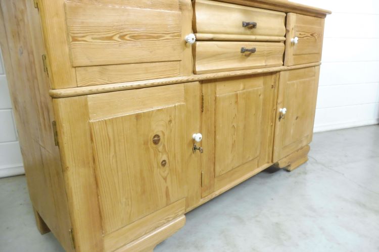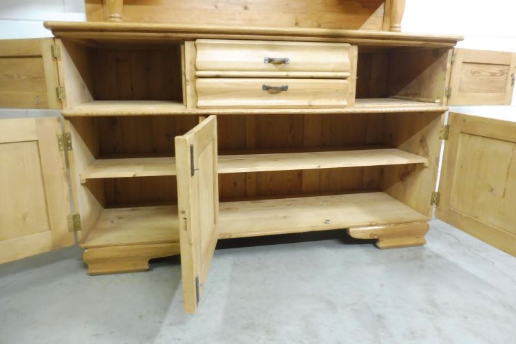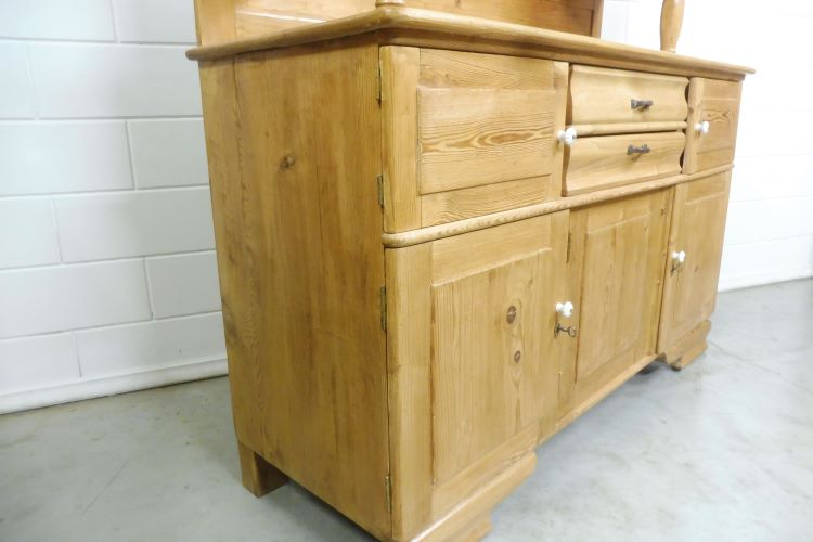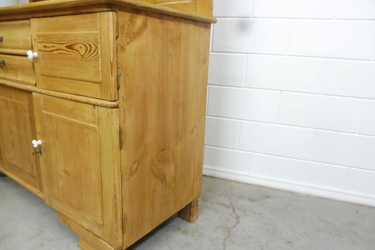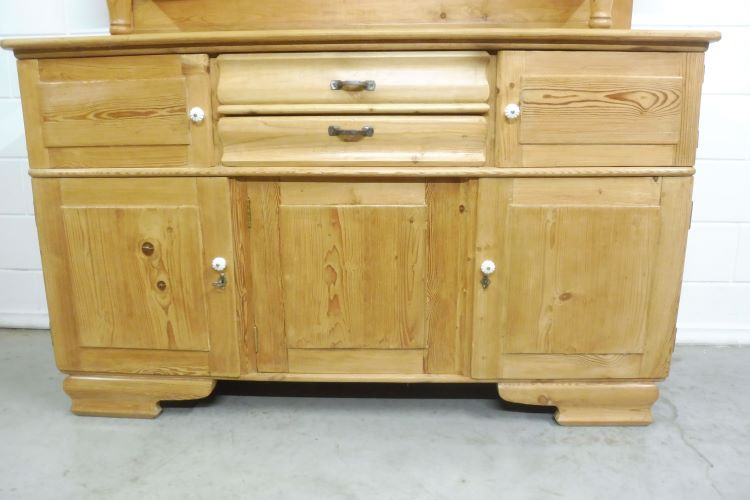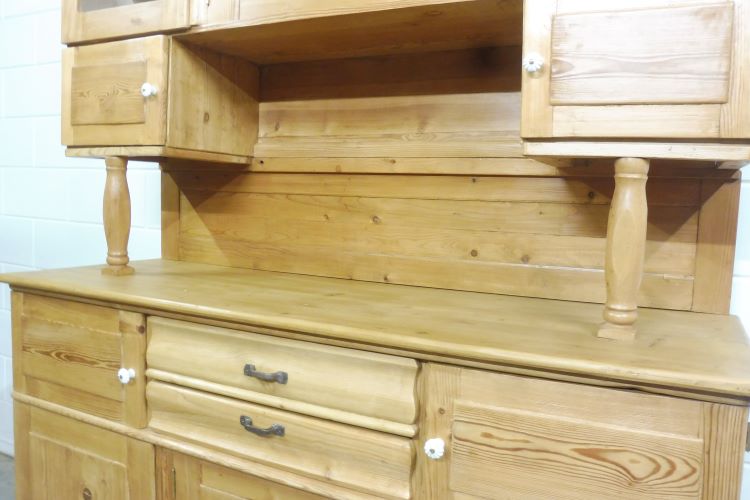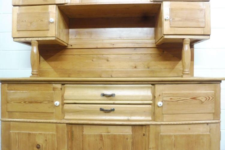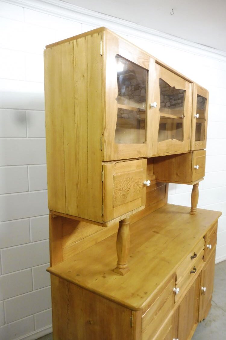 Beautiful antique Art Deco softwood kitchen hutch. Restored and treated with wax. Dismantles into 2 parts. Ready for immediate use. Height 206 cm Width 160 cm Depth 55 cm