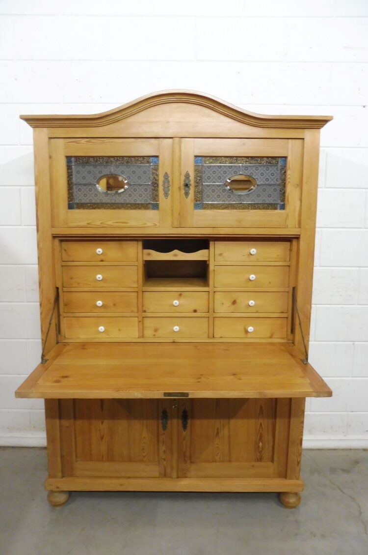 A beautiful antique softwood secretary desk, circa 1900. Restored and treated with wax. Cannot be dismantled. Ready for immediate use.