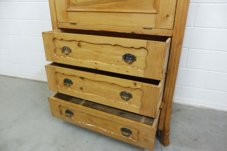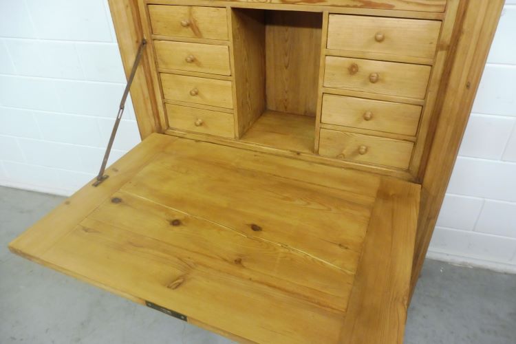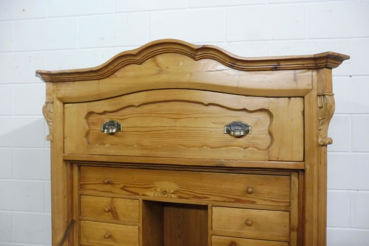 Beautiful antique secretary desk in softwood, circa 1900. Restored and treated with wax. Cannot be disassembled. Ready for immediate use.