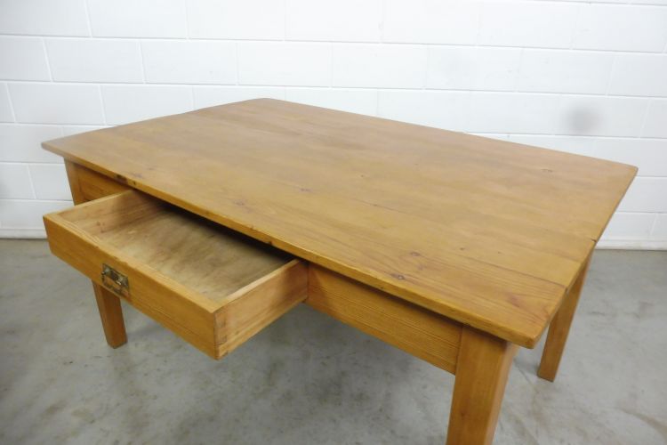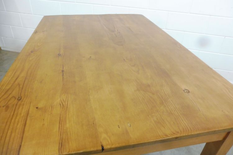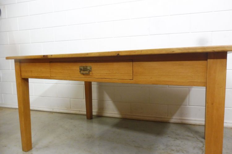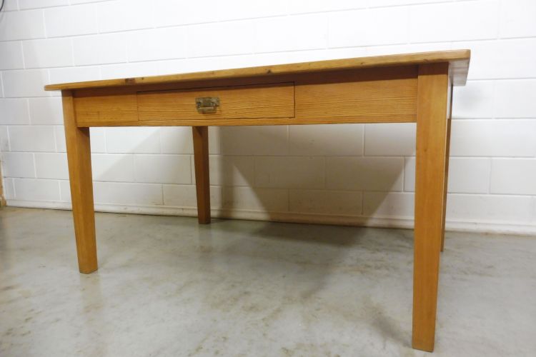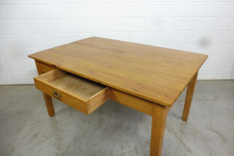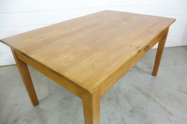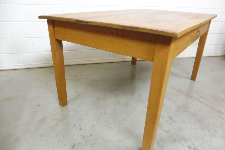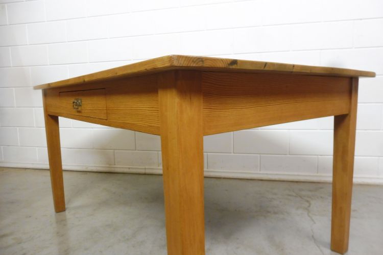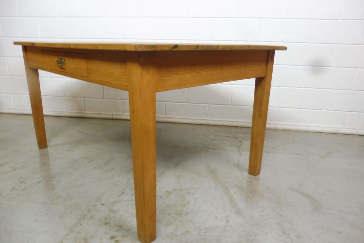 Beautiful antique softwood table circa 1900. Restored and treated with wax. The tabletop is lacquered. Ready for immediate use. Cannot be disassembled.