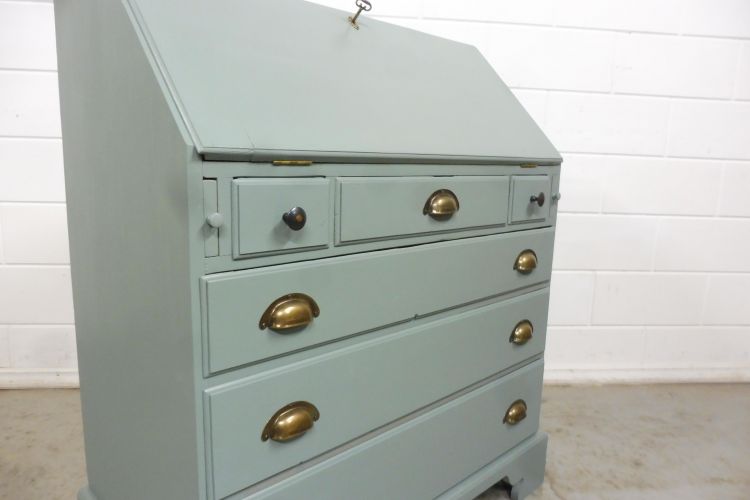 Beautiful secretary desk in light green softwood, country style. Fully restored. Ready for immediate use.