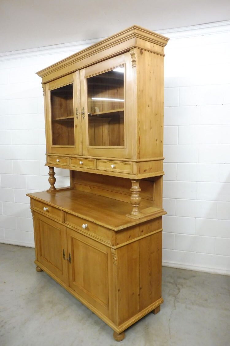 Beautiful softwood kitchen cupboard circa 1900. Fully restored and wax-treated. Non-dismantlable, consists of 1 piece. Ready-to-use condition. Height 184 cm Width 127 cm Depth 53 cm