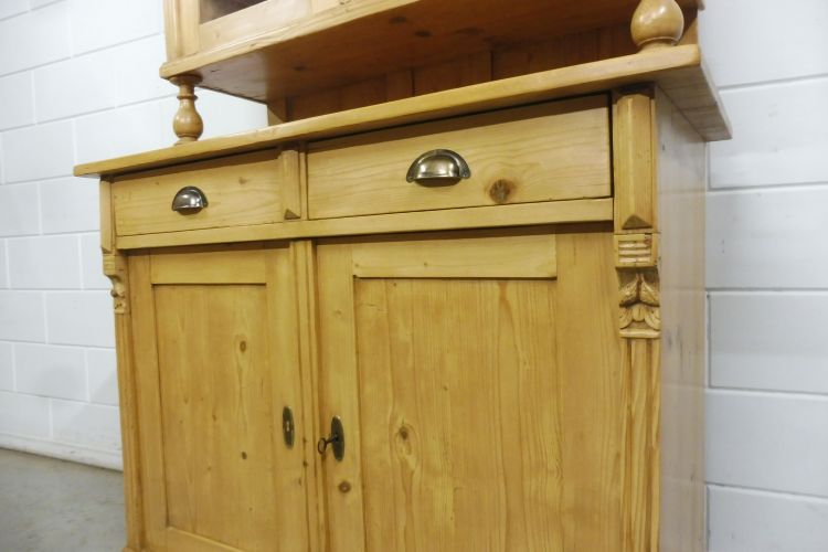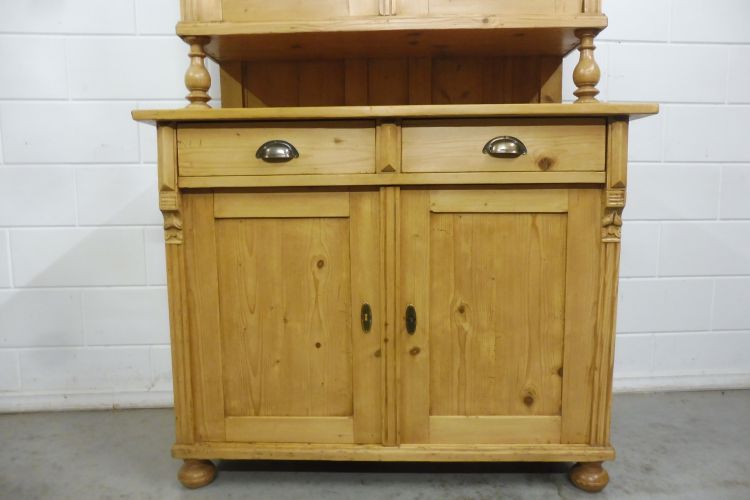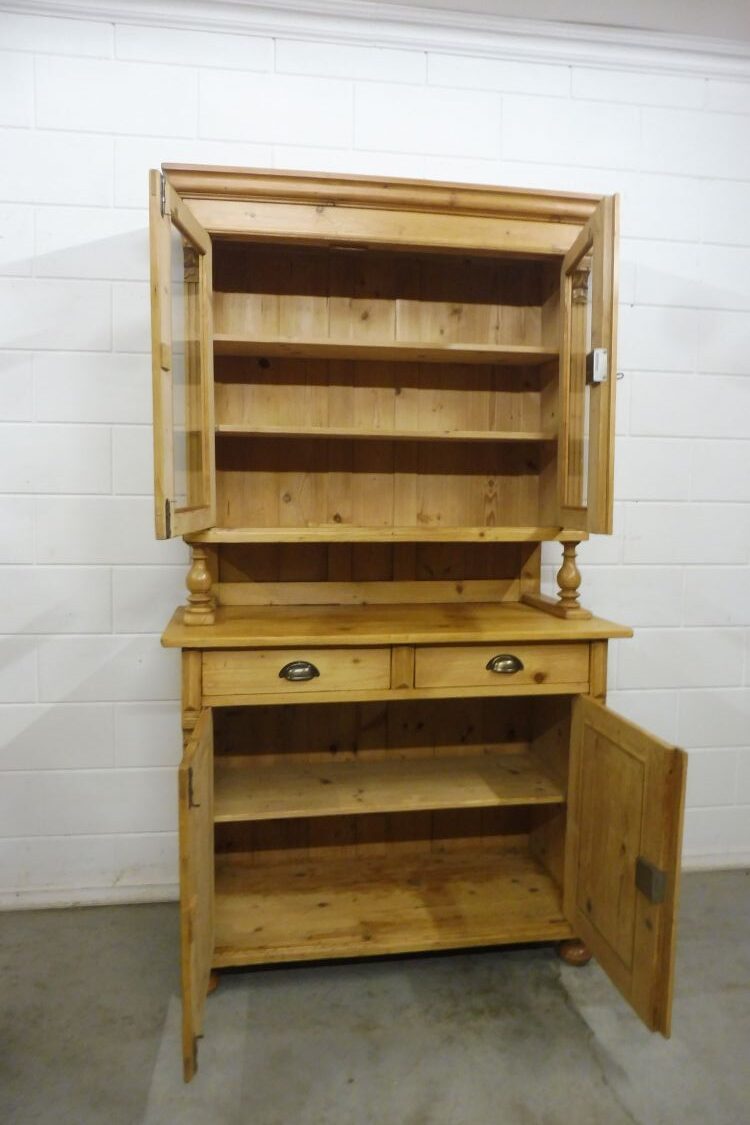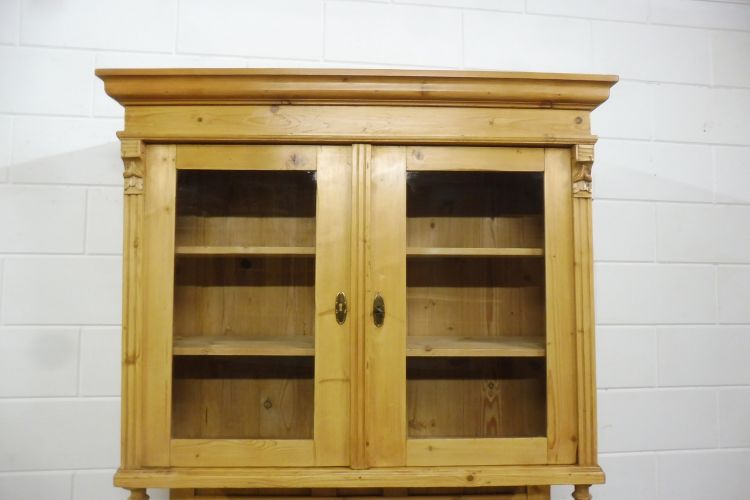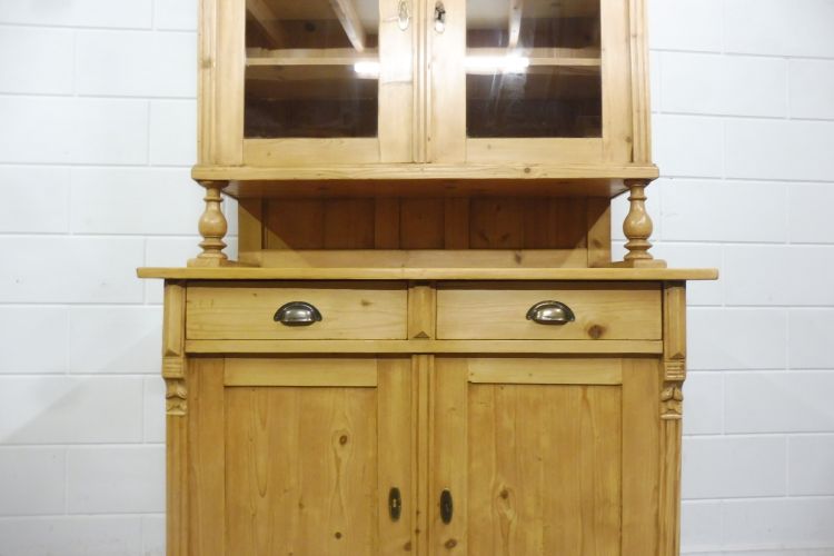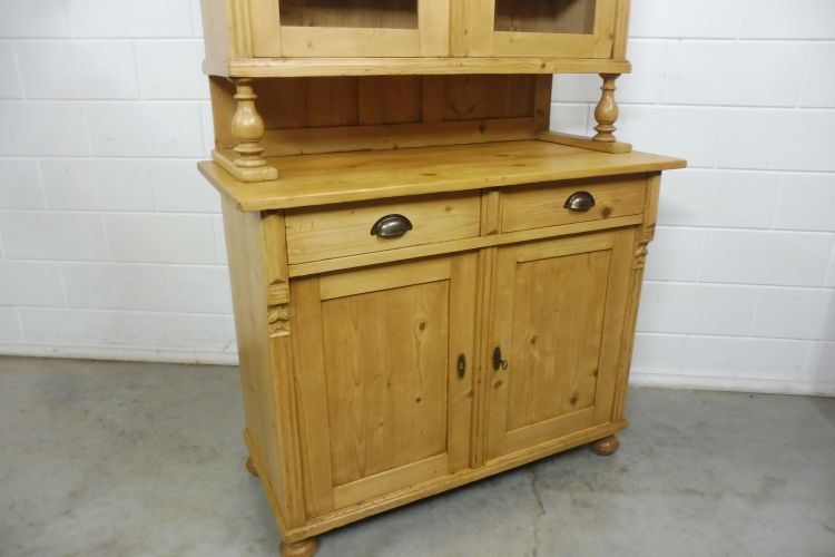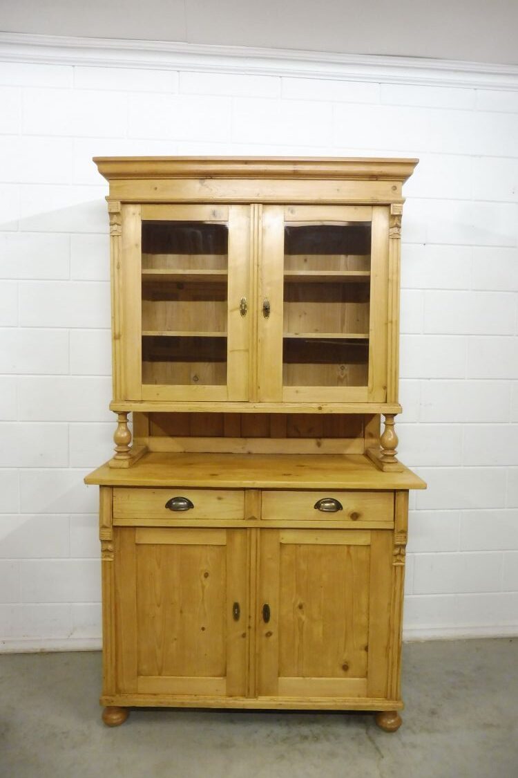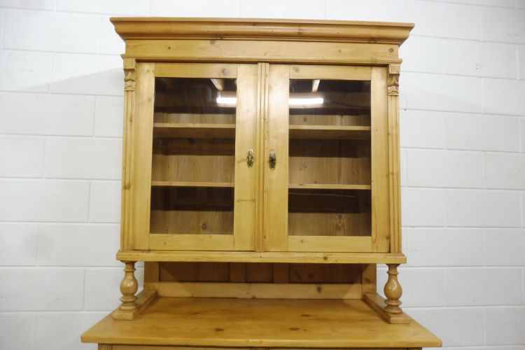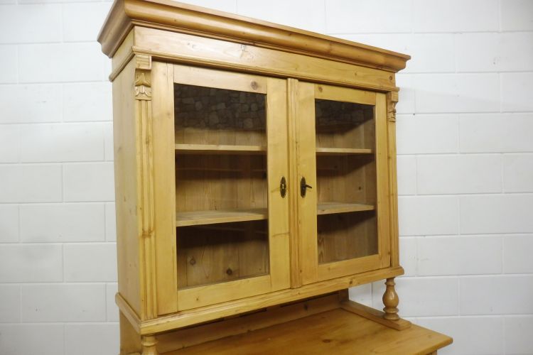 Beautiful antique softwood hutch from circa 1900, Gründerzeit period. Fully restored and wax-treated. Disassembles into 2 parts. Ready for immediate use. Height 199 cm Width 113 cm Depth 52 cm