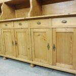 Grote buffetkast van naaldhout in landelijke stijl. Gerestaureerd en behandeld met was. Demonteerbaar in 4 delen. In gebruiksklare staat.