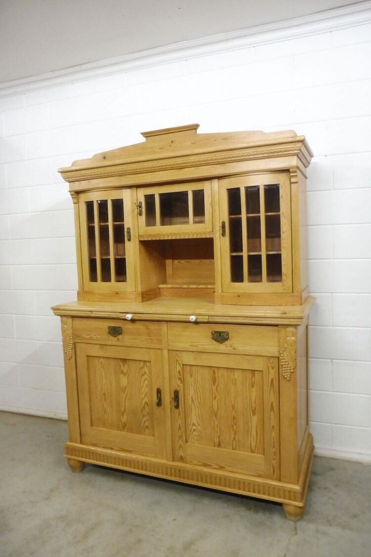Mooie buffetkast van zacht hout in landelijke stijl. Volledig gerestaureerd en behandeld met was. Demontabel in 2 delen. Klaar voor gebruik.
