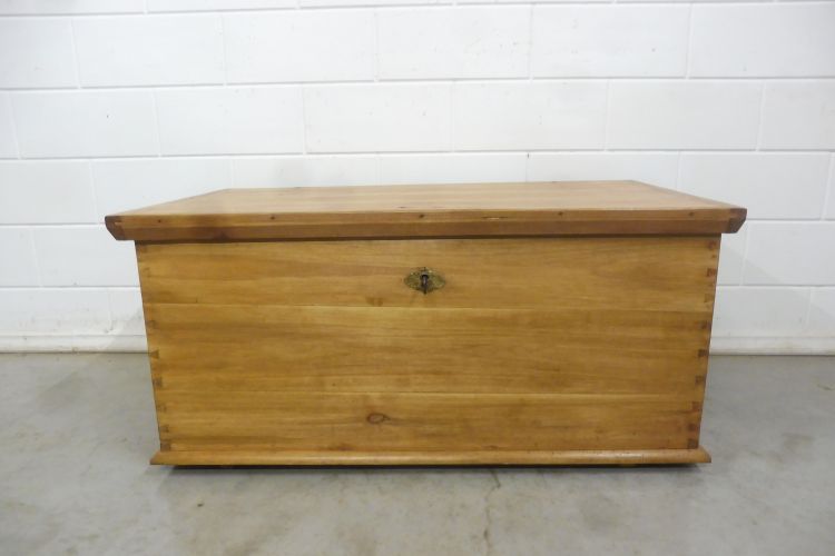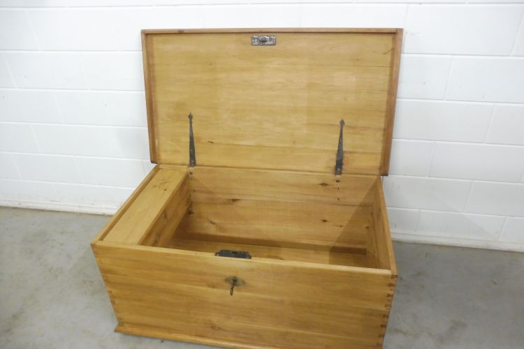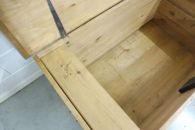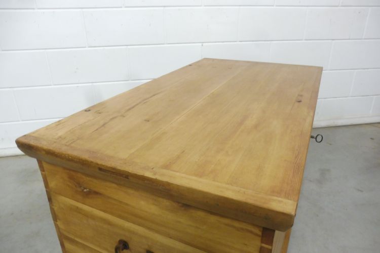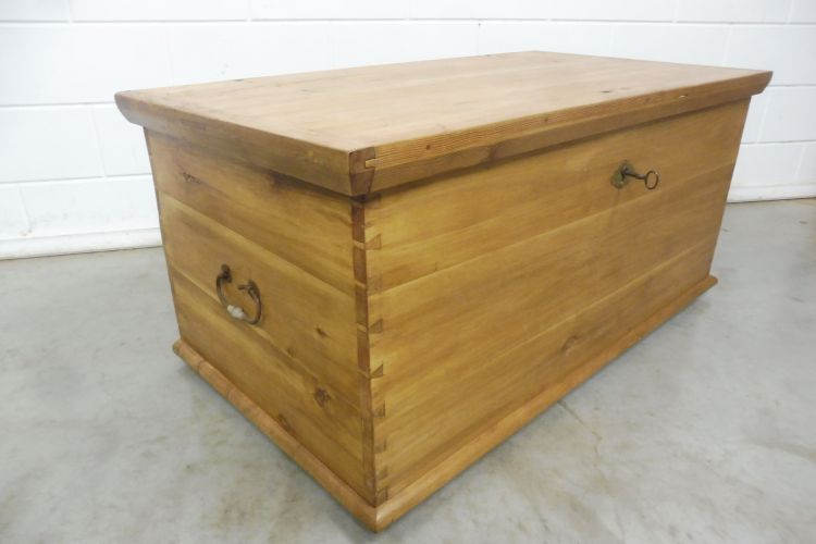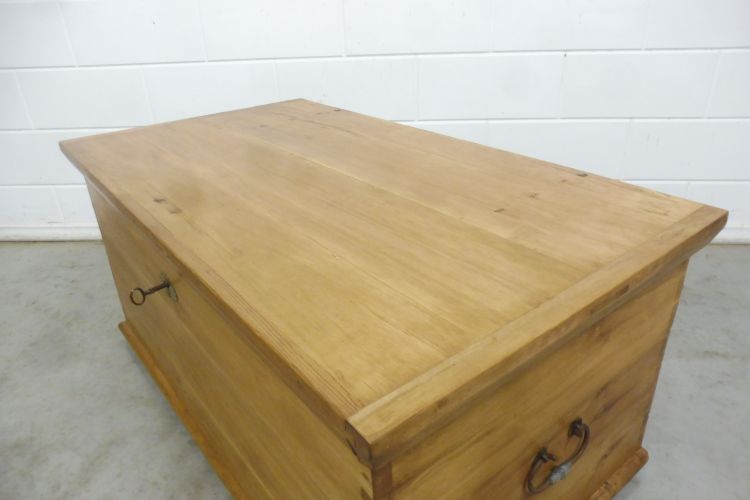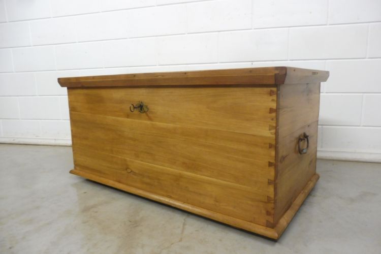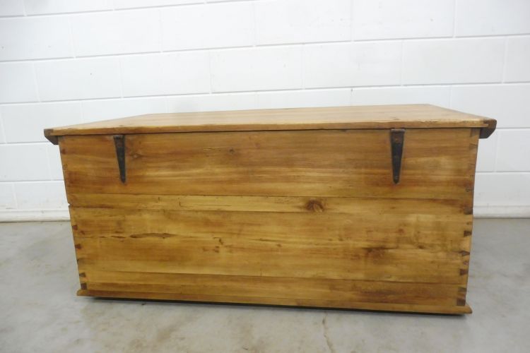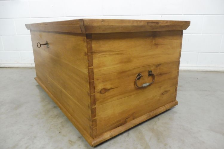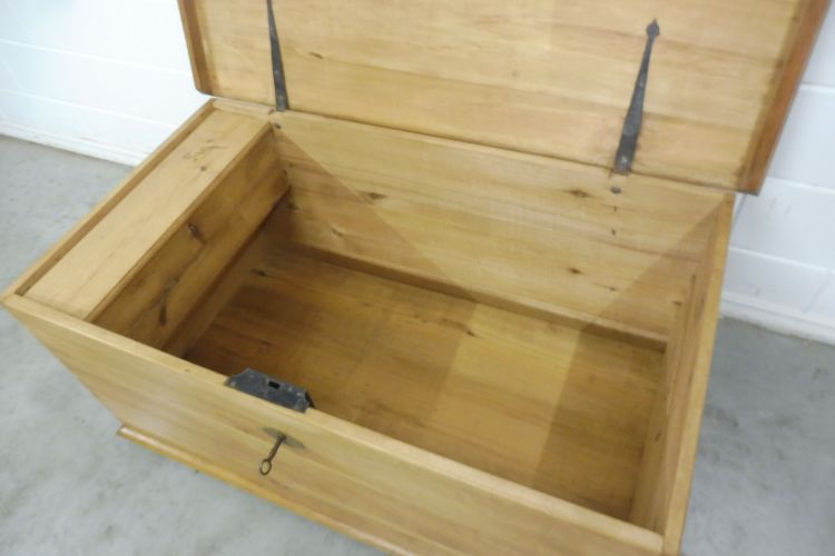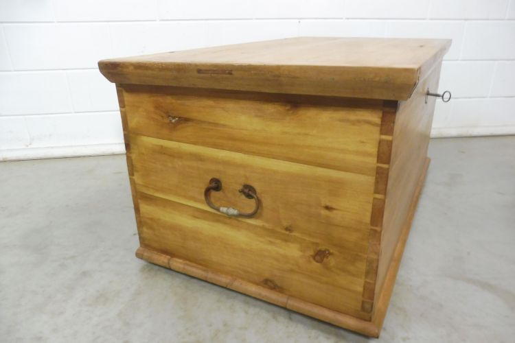 Antieke kist van zachthout, Biedermeier, ca. 1850. Volledig gerestaureerd en behandeld met was. Klaar voor gebruik. Het slot werkt.