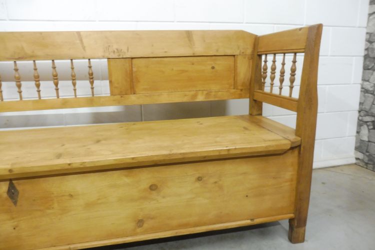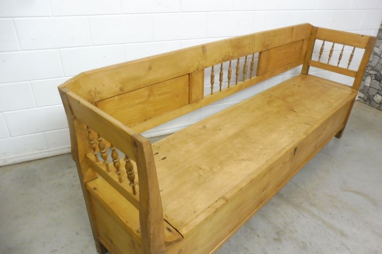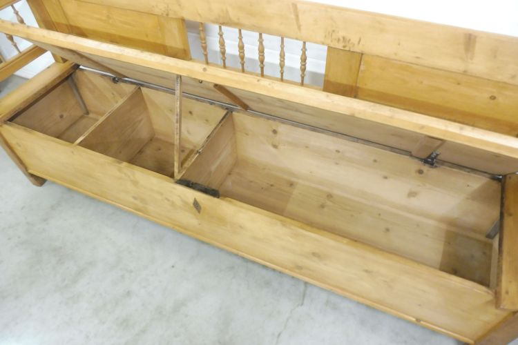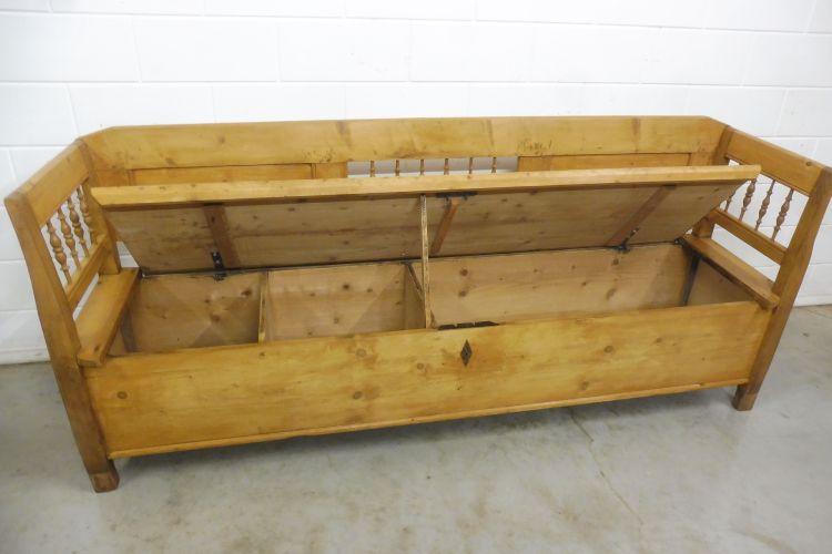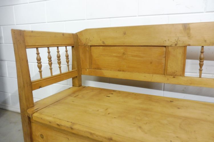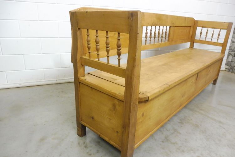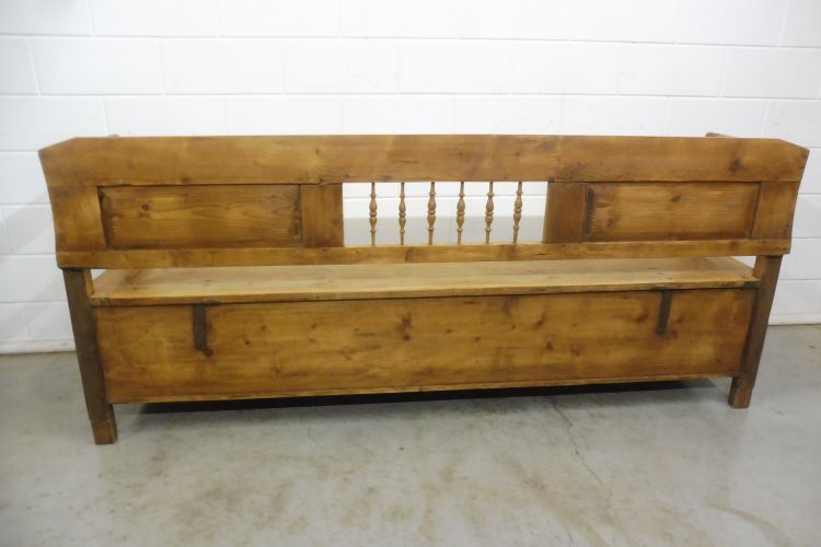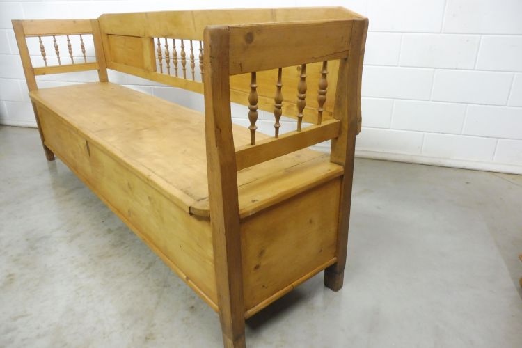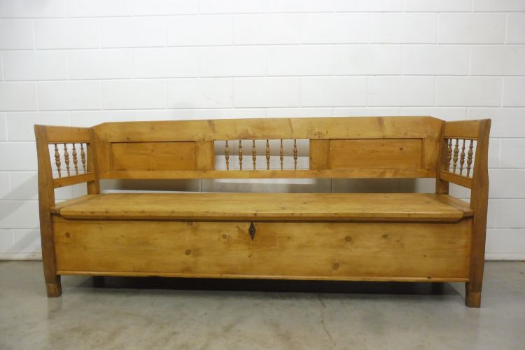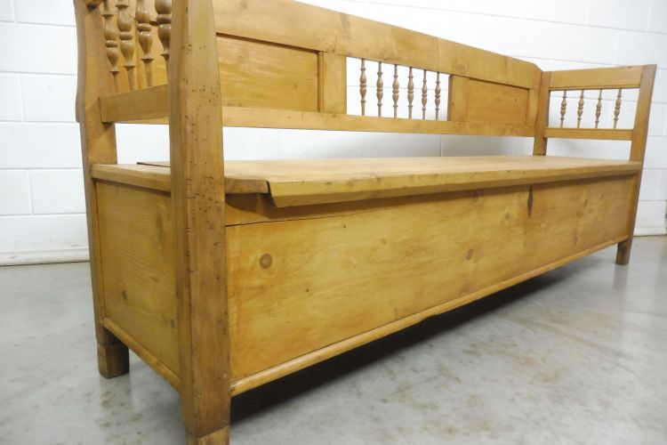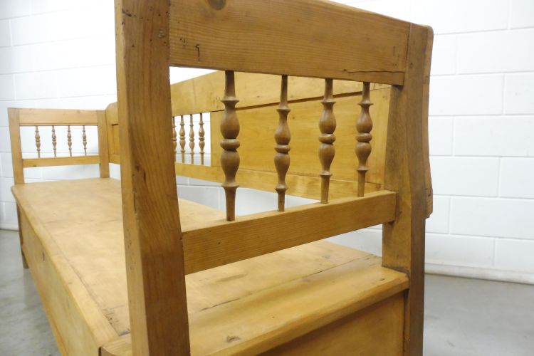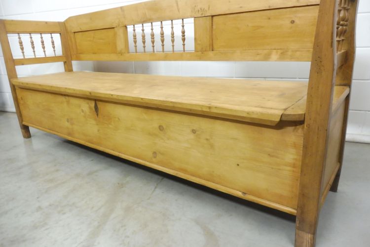 Antieke klepbank van naaldhout, circa 1850, Biedermeier. Volledig gerestaureerd en behandeld met was. Klaar voor gebruik.