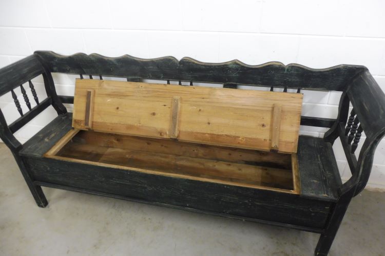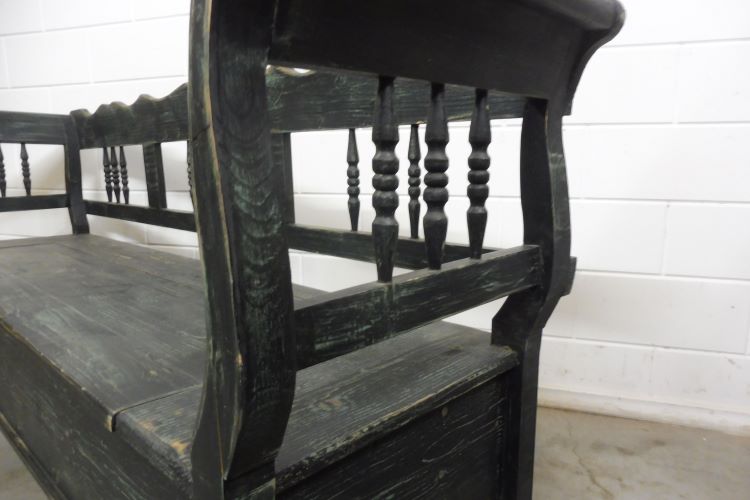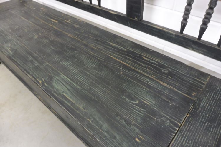 Prachtige kistbank van zachthout in Shabby Chic zwart. Volledig gerestaureerd. Klaar voor gebruik.