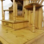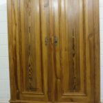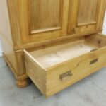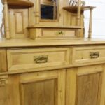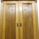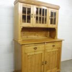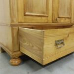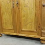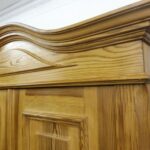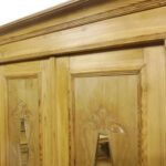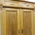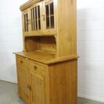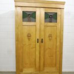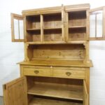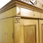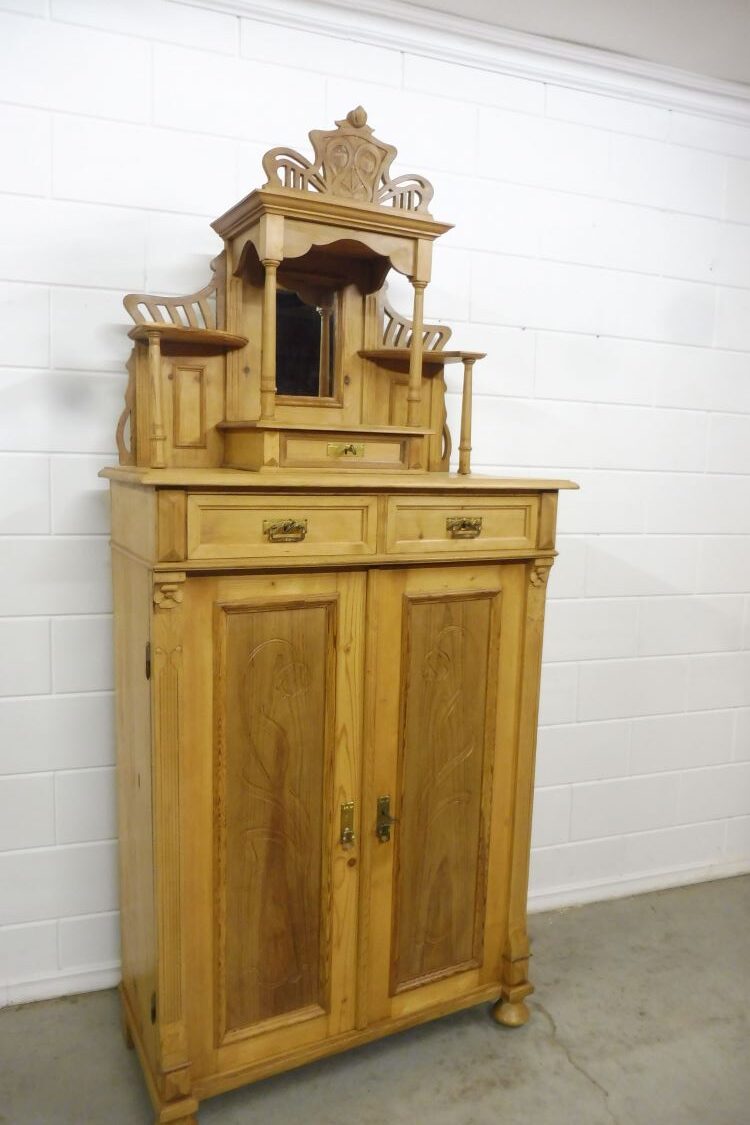 Schöner antiker Küchenschrank aus Weichholz Jugendstil um 1900. Restauriert und behandelt mit wachs. Zerlegbar in 2 teilen. Wohnfertigen Zustand. Bitte beachten Sie die Glasscheibe der mittleren Tür weist einnen kleinen Schaden auf, bitte sie die bilder.