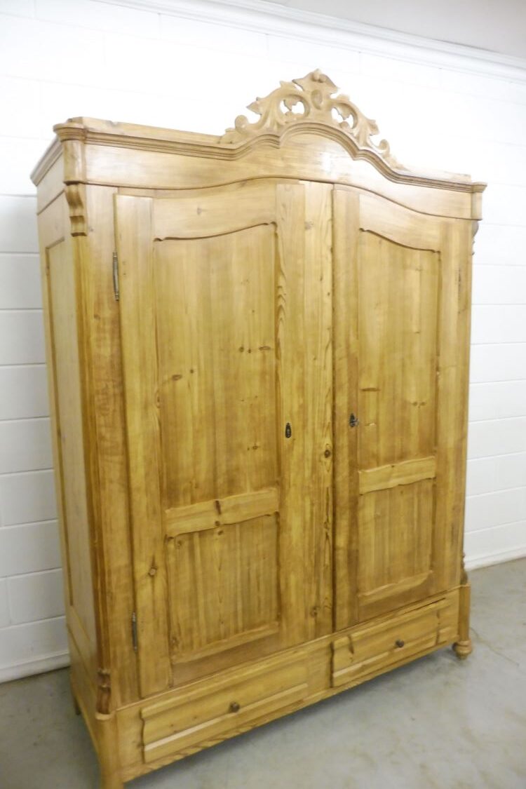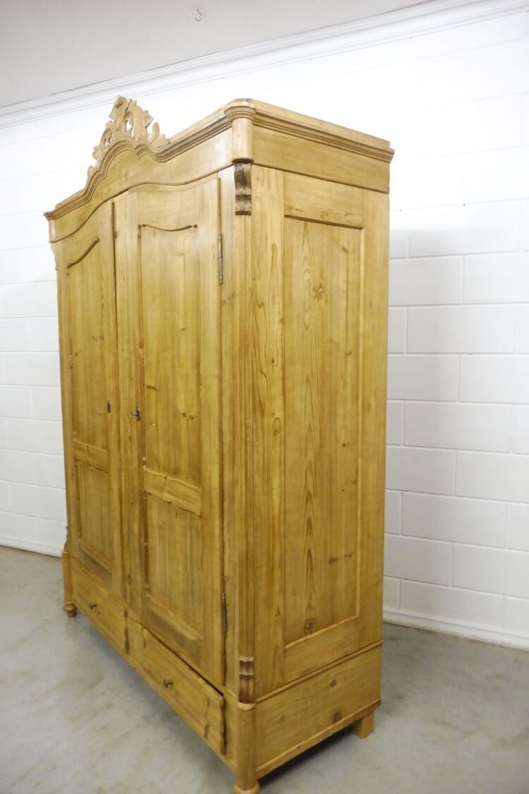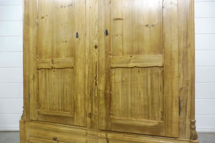 Schöner antiker Kleiderschrank aus Weichholz Louis Philippe um 1850. Restauriert und behandelt mit wachs. Komplett zerlegbar. Wohnfertigen Zustand.