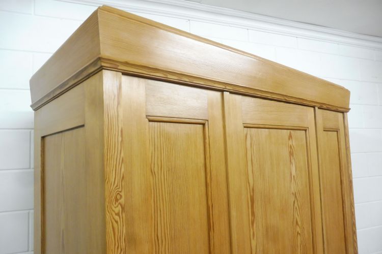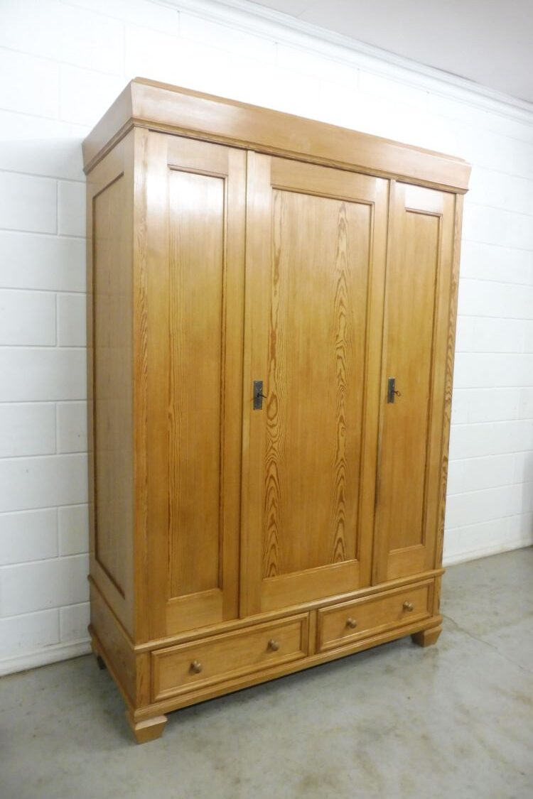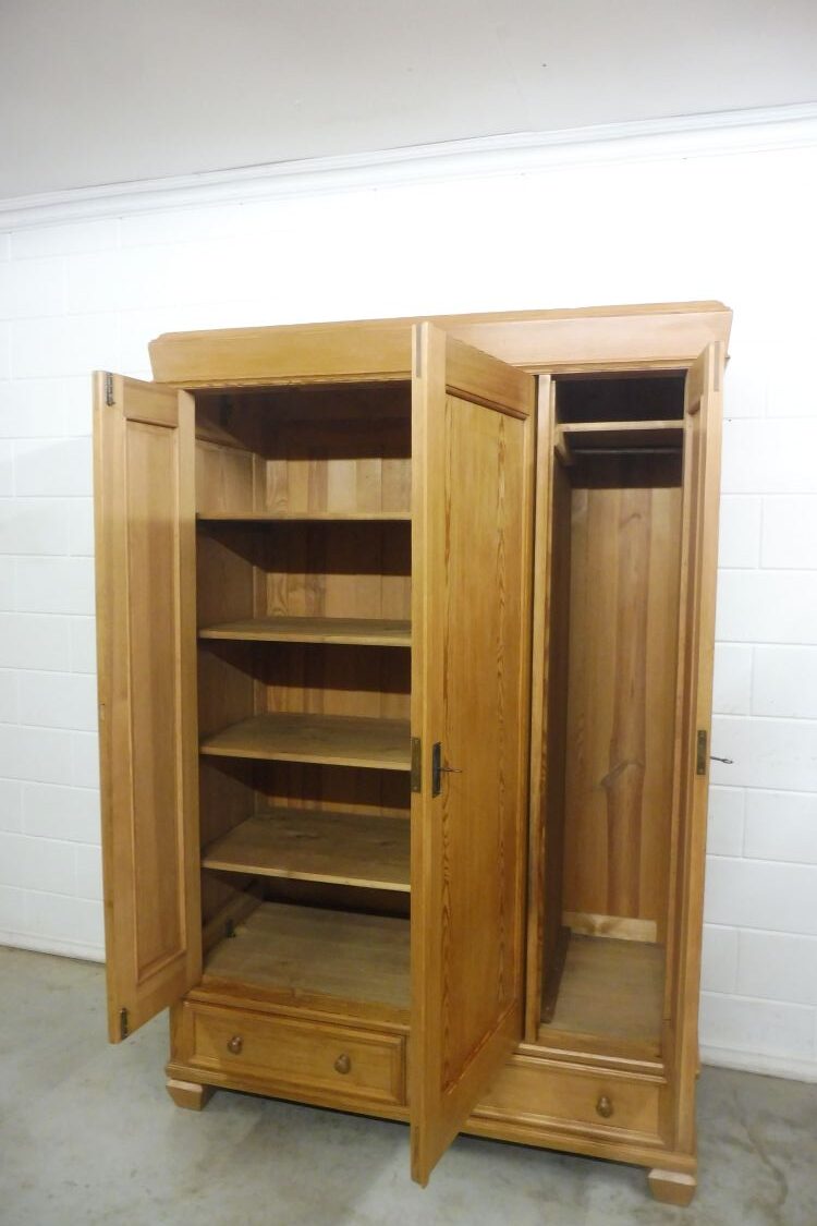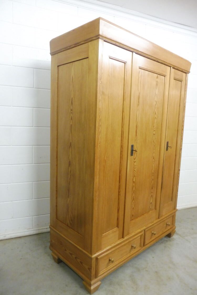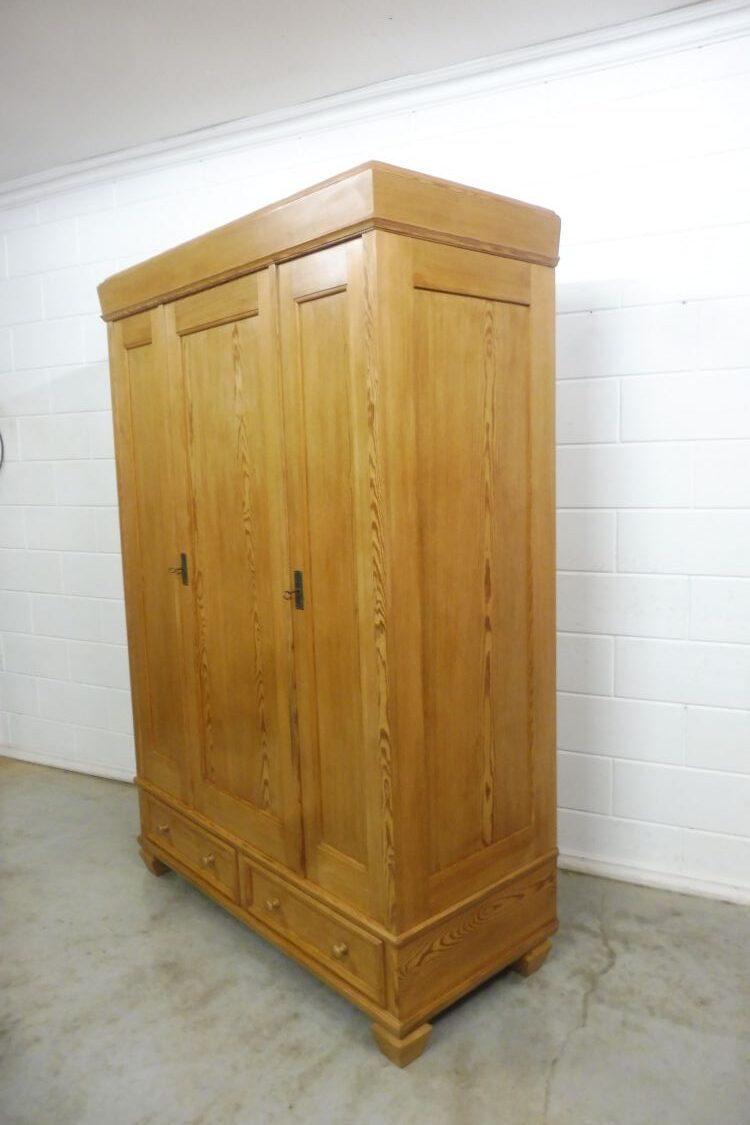 Schöner antiker Kleiderschrank aus weichholz um 1900 jugendstil. Komplett restauriert und behandelt mit wachs. Komplett zerlegbar. Wohnfertigen zustand. Innen tiefe ist 51cm