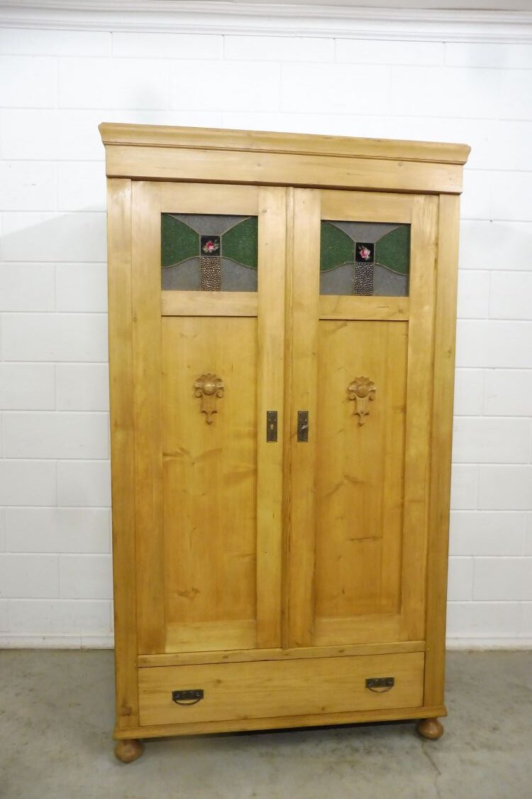 Antiker Schrank aus Weichholz Jugendstil um 1900. Restauriert und behandelt mit wachs. Wohnfertigen Zustand. Nicht zerlegbar.