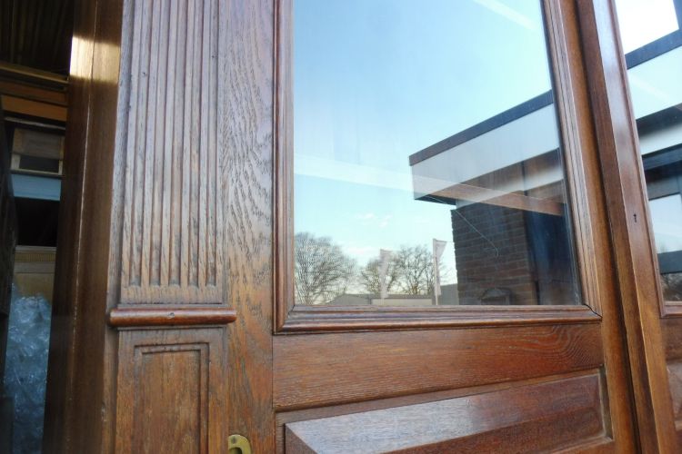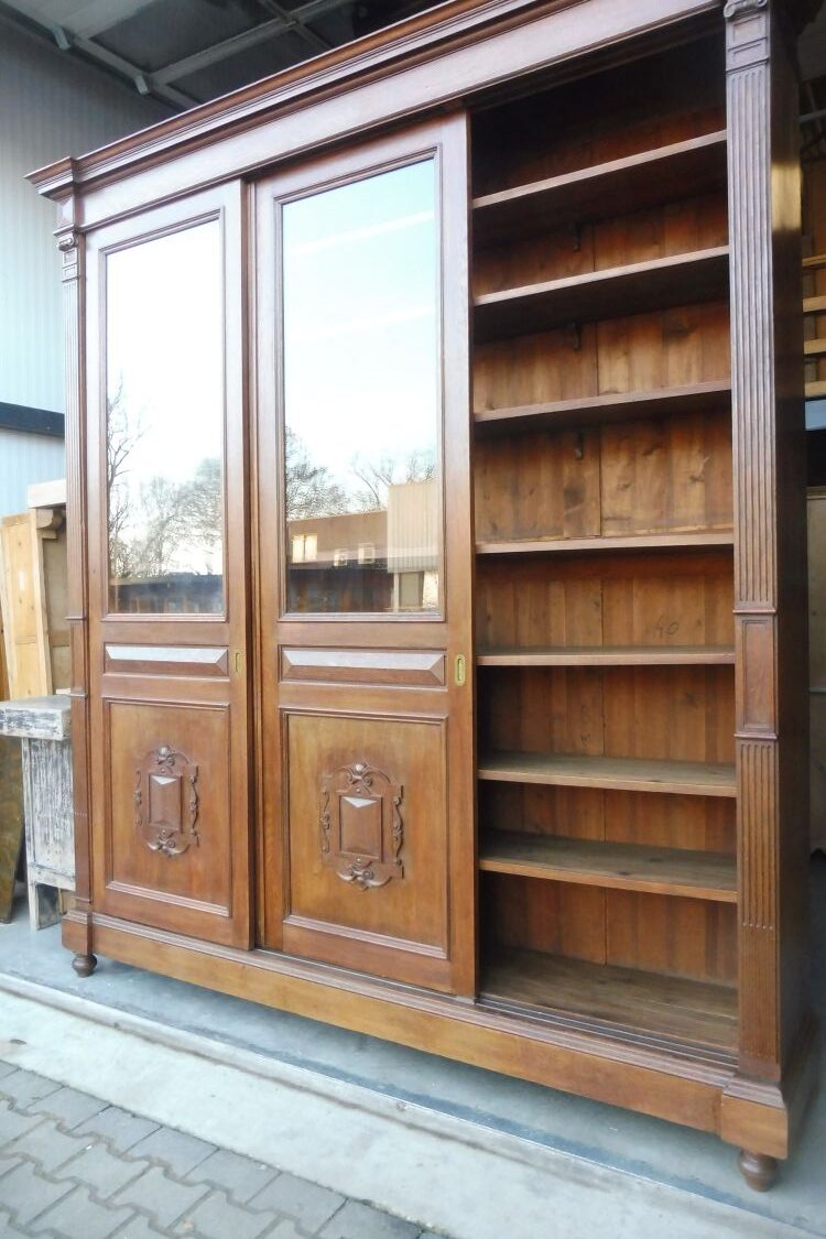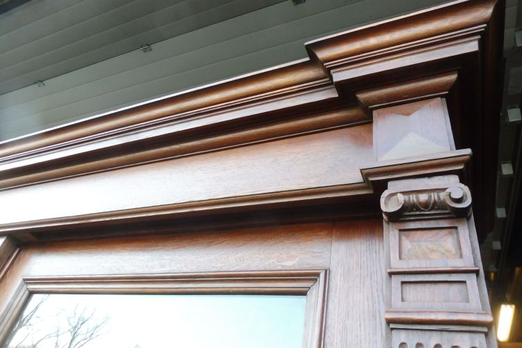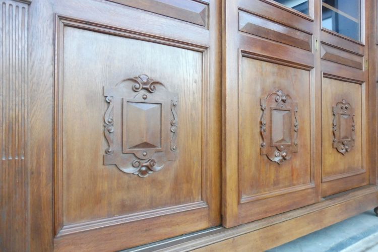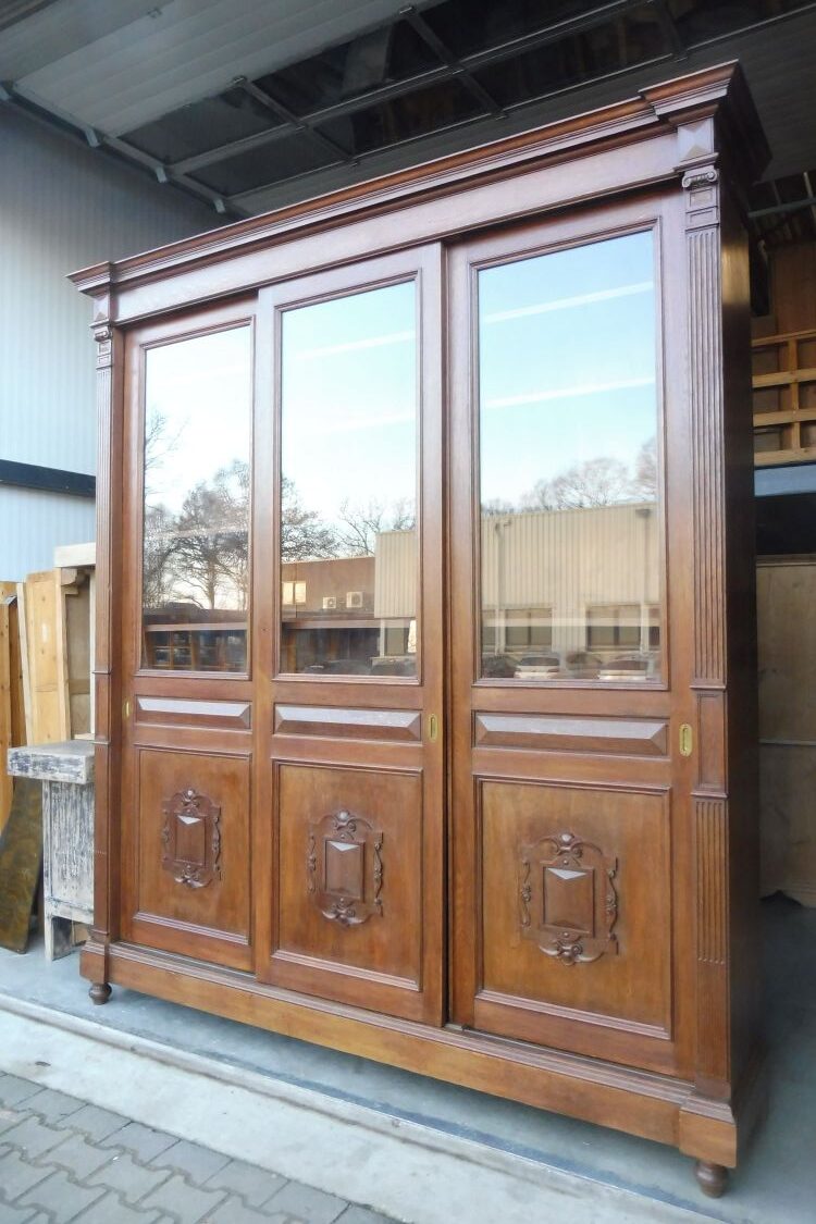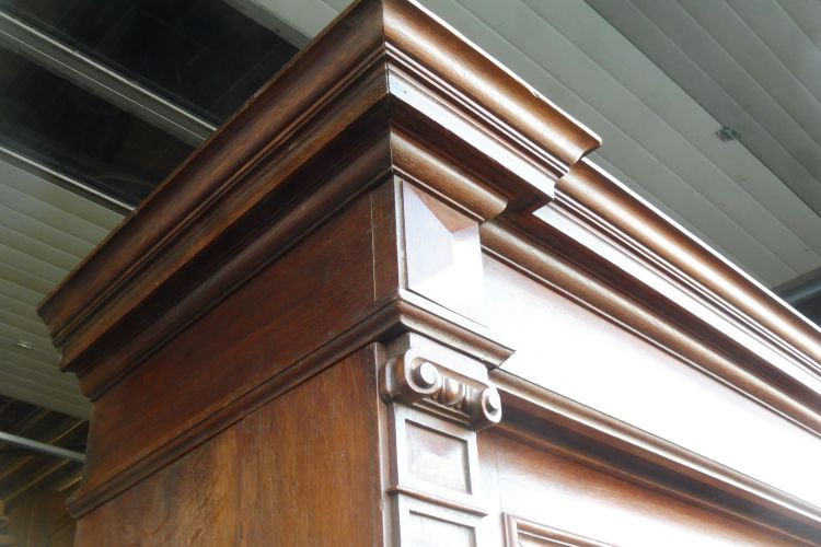 Sehr großer antiker Vitrinenschrank aus massiv Eiche um 1880 Gründerzeit. Komplett restauriert und behandelt mit wachs. Wohnfertigen Zustand. Komplett zerlegbar.