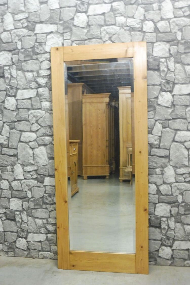 schöner antiker wandspiegel aus weichholz mit facettenschliff. Wohnfertigen zustand, der spiegel verfügt über ein par kleine gebrauchsspuren.