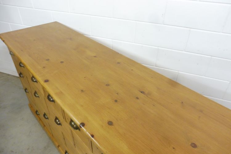 Schöner Apothekerschrank aus Weichholz. Komplett restauriert und behandelt mit wachs. Wohnfertigen Zustand. Höhe 93cm Breite 180cm Tiefe 53cm