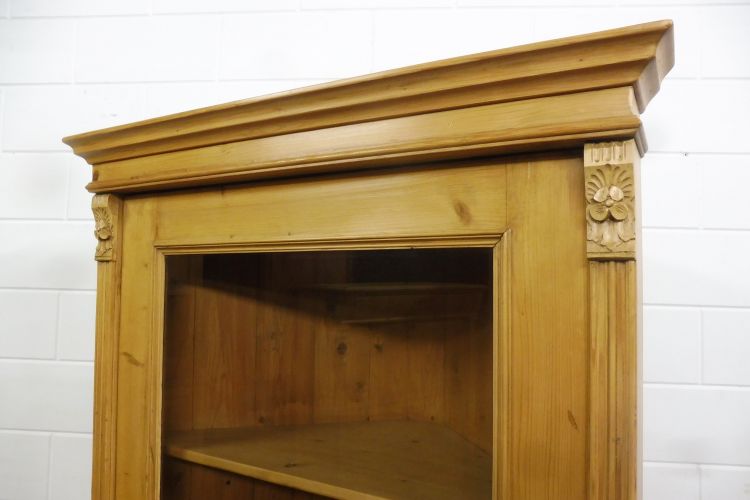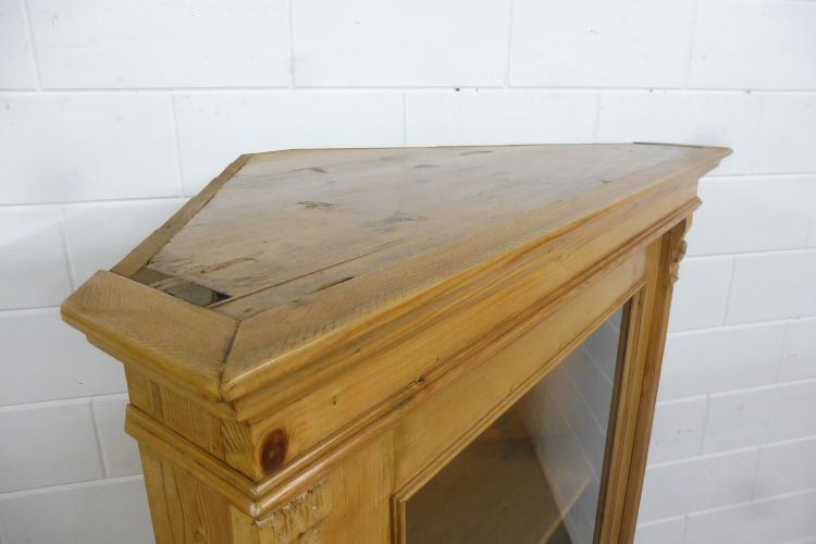 Schöner Eckschrank aus Weichholz. Komplett restauriert und behandelt mit wachs. Wohnfertigen Zustand. Höhe 173cm Breite 103cm Schenkelmaß 74cm
