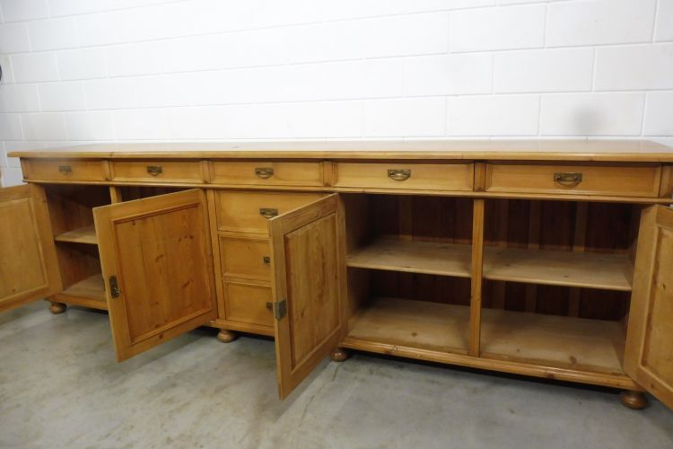 Sehr große Kommode Anrichte aus Weichholz. Komplett restauriert und behandelt mit wachs. Nicht zerlegbar. Wohnfertigen Zustand. Höhe 101cm Breite 328cm Tiefe 62cm