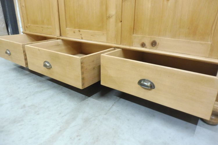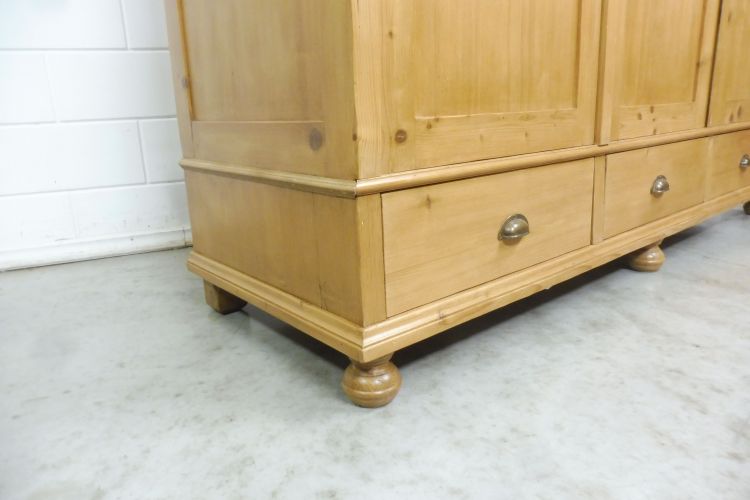Großer Buffetschrank aus Weichholz. Restauriert und behandelt mit wachs. Zerlegbar in 2 Teilen. Wohnfertigen Zustand. Höhe 221cm Breite 274cm Tiefe 53cm