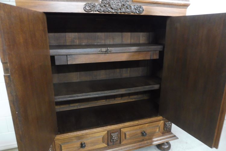 Schöner Schrank aus Eiche Palisander Furniert um 1960. Restauriert und behandelt mit wachs. Zerlegbar in 3 Teilen. Wohnfertigen Zustand.